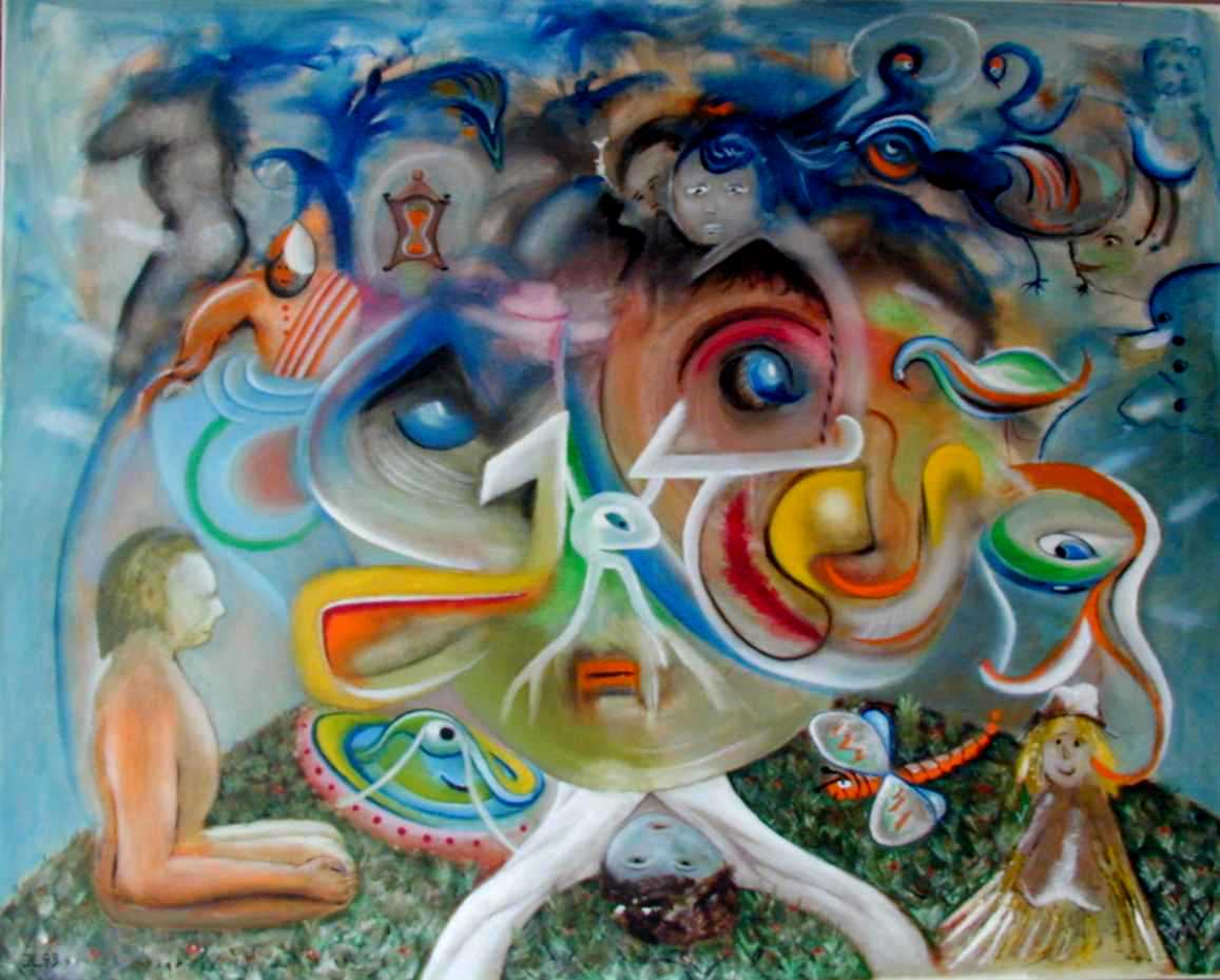 childhood. Directly above him is an incomprehensible face: two
