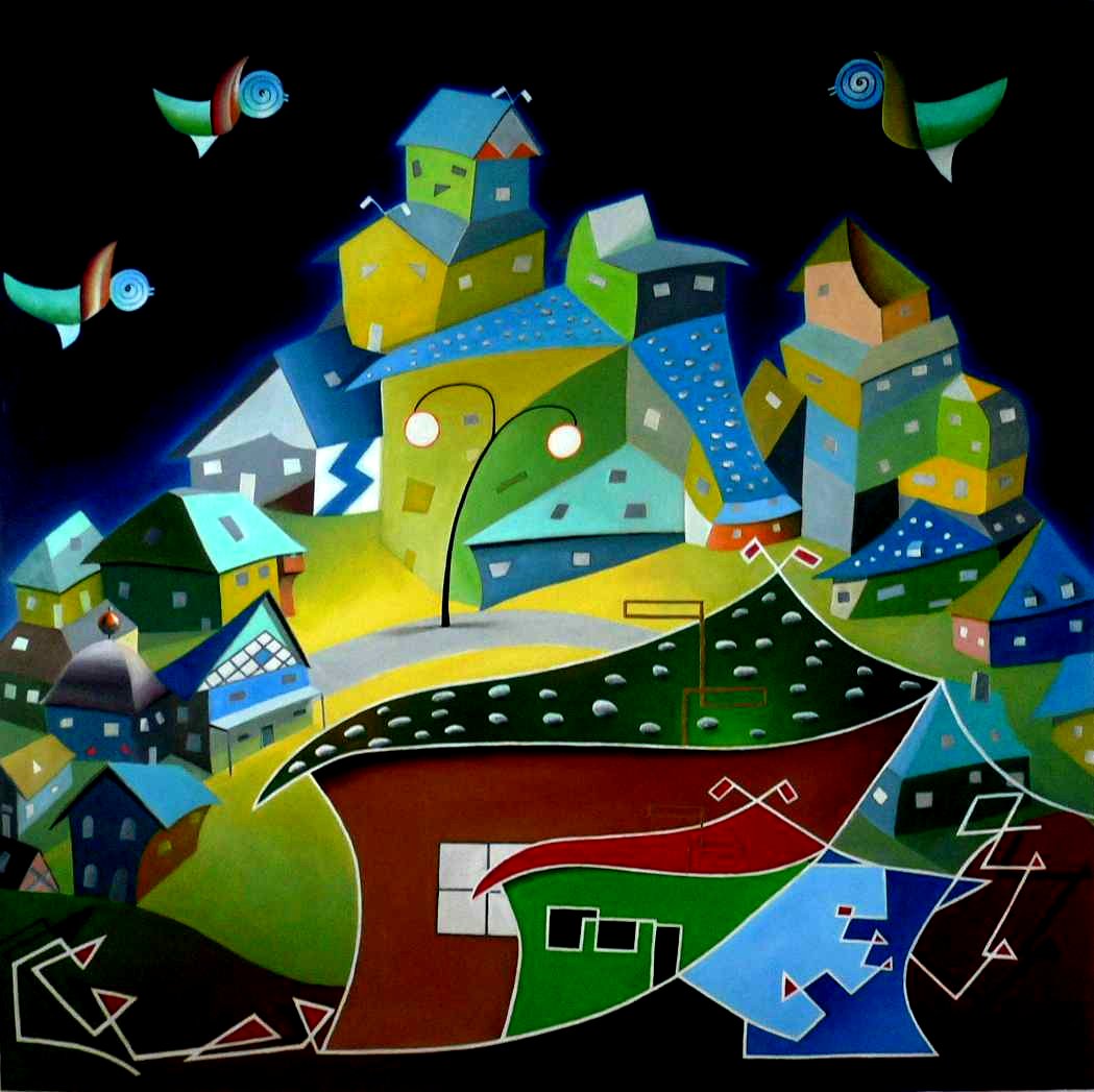1995, City Picture, Oil on plywood, 115cm*115cm |